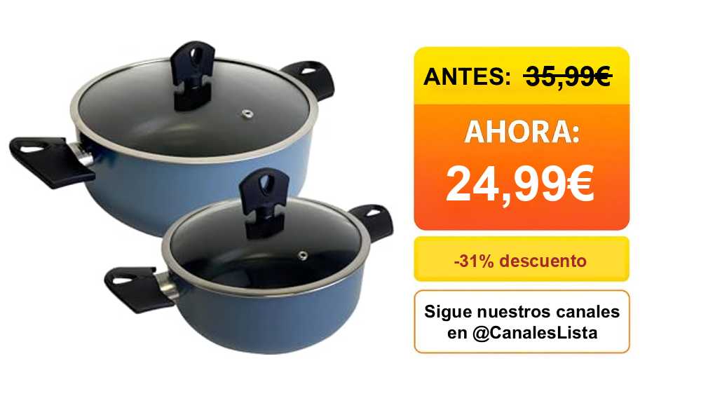 ๐๐ Juego de 2 Cacerolas de ร20ร24cm con tapa en Aluminio prensado color Azul NOIA San Ignacio๐ #Amazon