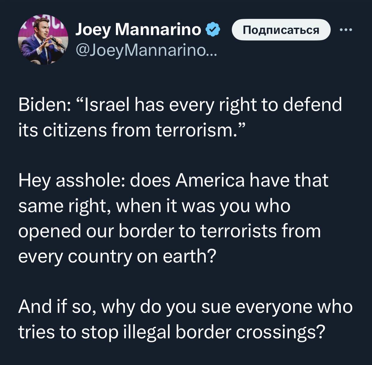 Эй, засранец, имеет ли Америка такое же право, если это ты открыл нашу границу для террористов из всех стран мира?