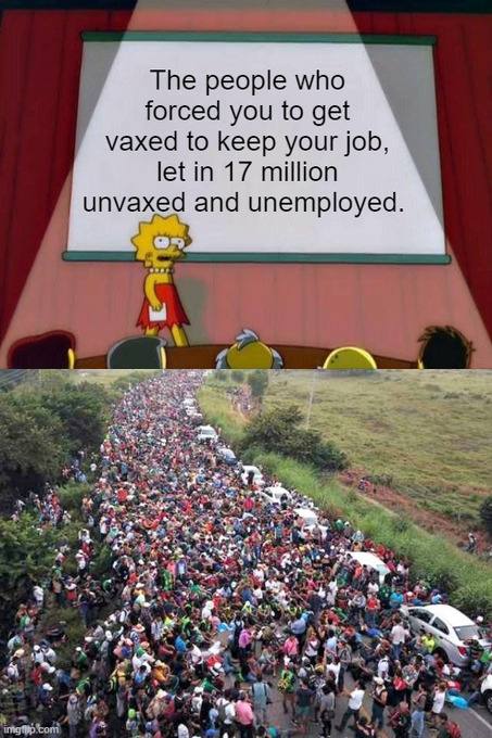 Люди, которые заставили вас вакцинироваться ради сохранения работы, впустили 17 миллионов невакцинированных и безработных