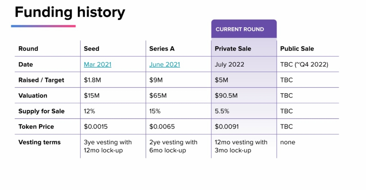Инвесторы у проекта неплохие. Но tier-1, пожалуй, только Arrington Capital. Причем иксов у них практически нет перед приватом, всего-то 1.5х. Казалось бы вот оно счастье, считай дают шикарные цены. Может быть это действительно так, но стоит учесть, когда залетали фонды в Series A. На дворе был сентябрь 2021 года, когда биток стоил $46к. Может фонды тут просто просчитались изначально, почему то нет тут ни a16z, ни Multicoin, ни Sequoia...