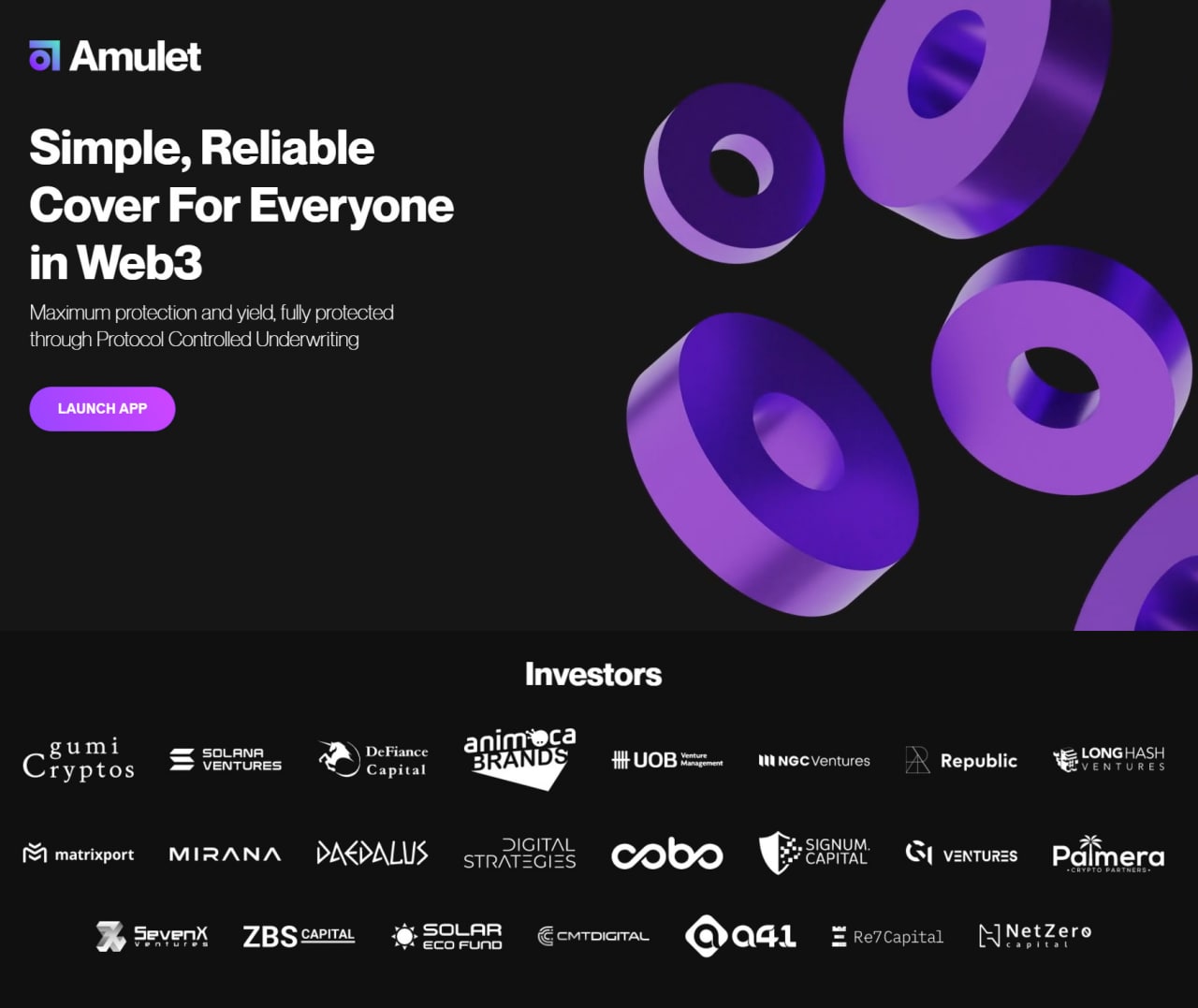 Amulet - это страховой протокол Defi для экосистемы на базе Rust с первоначальным развитием на Solana (далее и на Cosmos). Токеномика и больше информации о проекте представлено в Litepaper. Проект привлек 6М$ от таких фондов как Cryptos Capital, Republic Capital, Solana Ventures, DeFiance Capital, Animoca Brands.