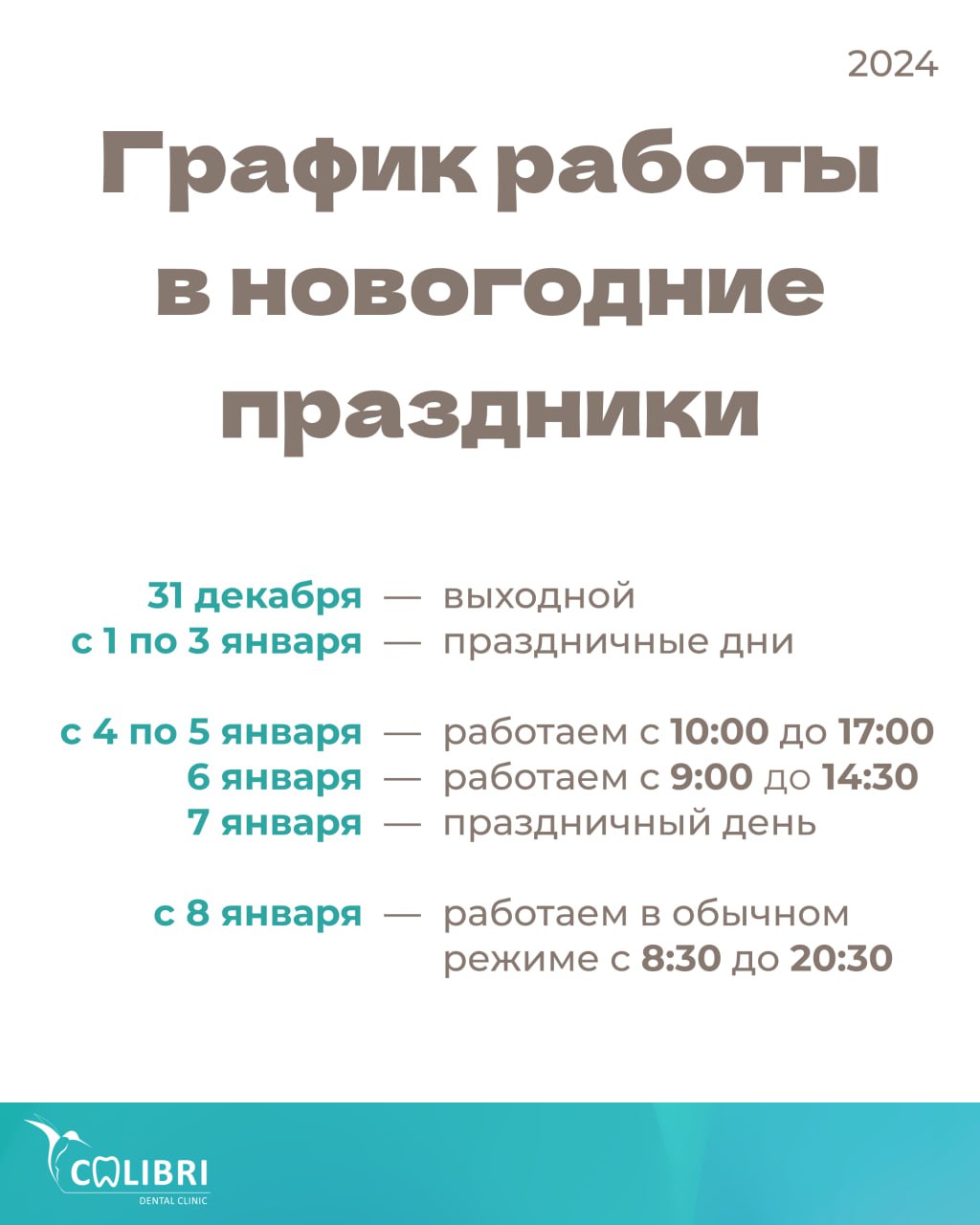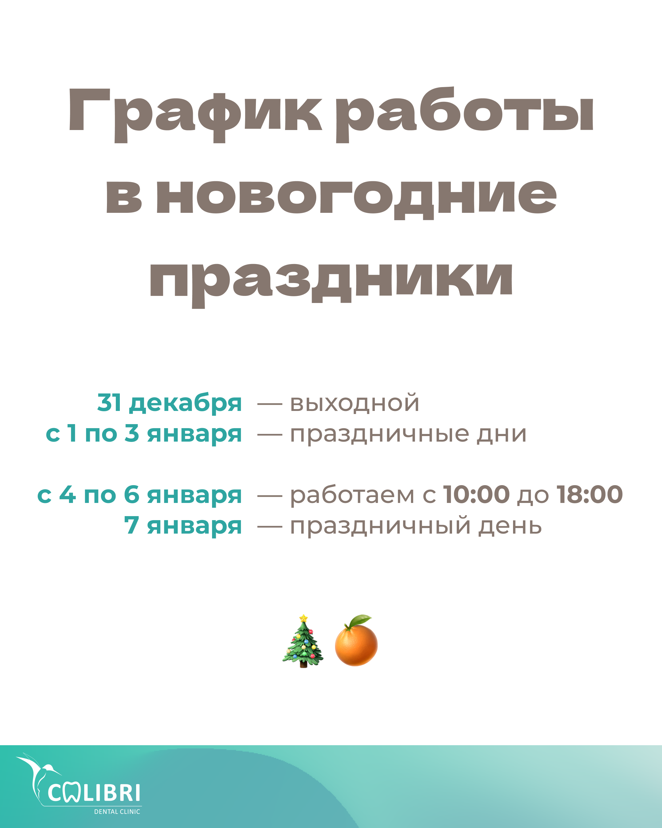 Уважаемые пациенты, обращаем ваше внимание на график работы нашей стоматологии в праздничные дни ! 🎄🦷