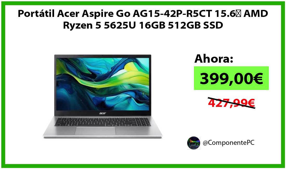 🔹Portátil Acer Aspire Go AG15-42P-R5CT 15.6″ AMD Ryzen 5 5625U 16GB 512GB SSD solo 399,00€❗️⚡️(PVP: 427,99€)