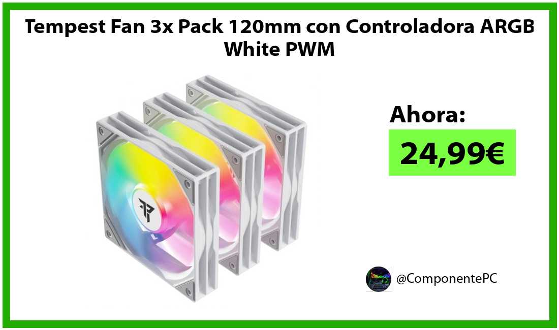 🔹Tempest Fan 3x Pack 120mm con Controladora ARGB White PWM solo 24,99€❗️⚡️