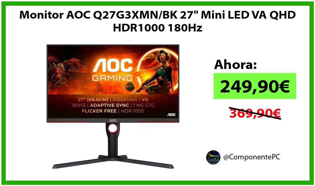 🔹Monitor AOC Q27G3XMN/BK 27" Mini LED VA QHD HDR1000 180Hz solo 249,90€❗️⚡️(PVP: 369,90€)