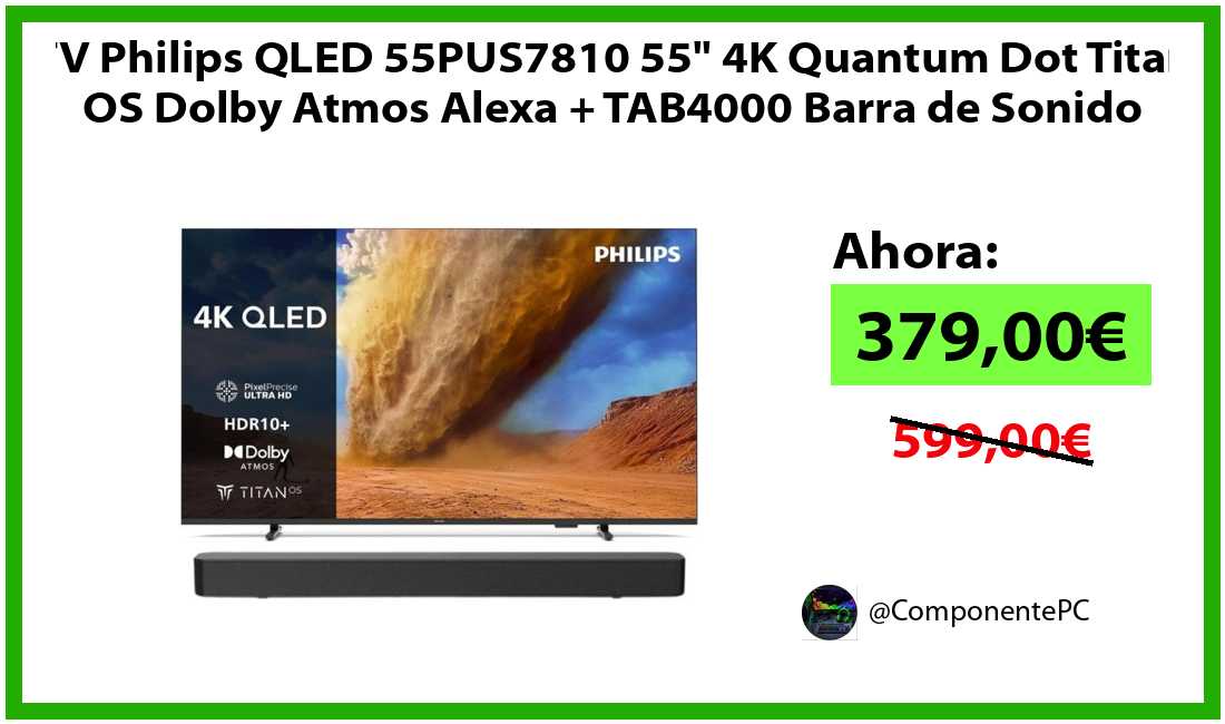 🔹TV Philips QLED 55PUS7810 55" 4K Quantum Dot Titan OS Dolby Atmos Alexa + TAB4000 Barra de Sonido solo 379,00€❗️⚡️(PVP: 599,00€)