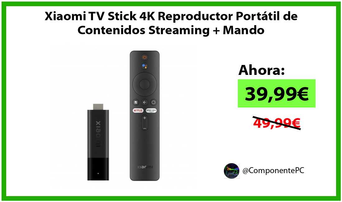 🔹Xiaomi TV Stick 4K Reproductor Portátil de Contenidos Streaming + Mando solo 39,99€❗️⚡️(PVP: 49,99€)