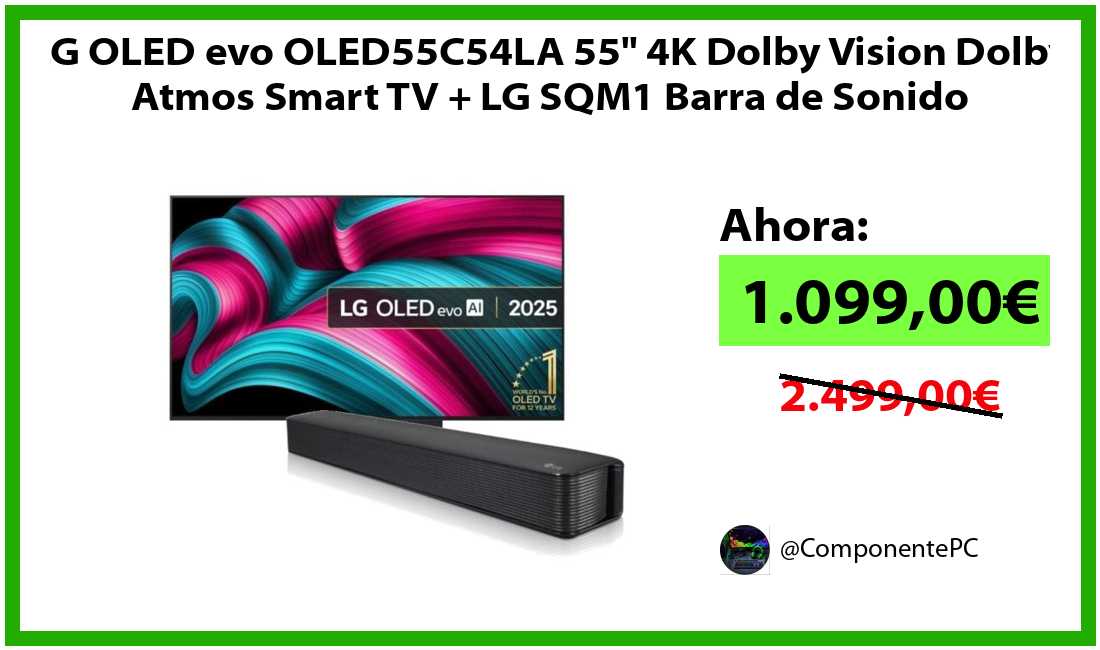 🔹LG OLED evo OLED55C54LA 55" 4K Dolby Vision Dolby Atmos Smart TV + LG SQM1 Barra de Sonido solo 1.099,00€❗️⚡️