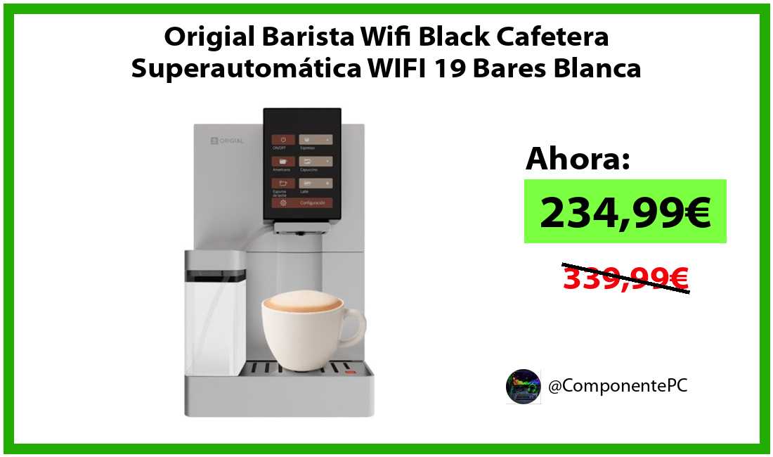 🔹Origial Barista Wifi Black Cafetera Superautomática WIFI 19 Bares Blanca solo 234,99€❗️⚡️(PVP: 339,99€)