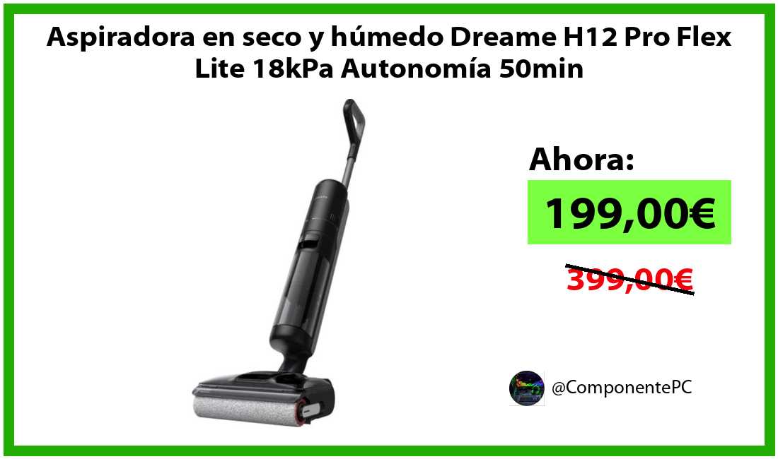 🔹Aspiradora en seco y húmedo Dreame H12 Pro Flex Lite 18kPa Autonomía 50min solo 199,00€❗️⚡️