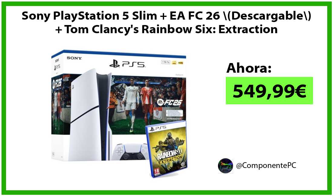 🔹Sony PlayStation 5 Slim + EA FC 26 (Descargable) + Tom Clancy's Rainbow Six: Extraction solo 549,99€❗️⚡️