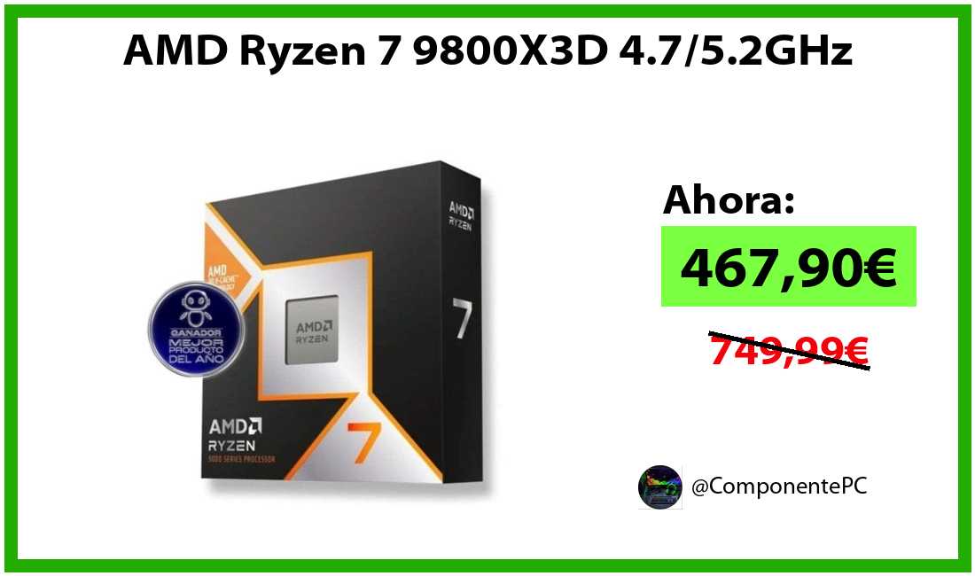 🔹AMD Ryzen 7 9800X3D 4.7/5.2GHz solo 467,90€❗️⚡️(PVP: 749,99€)