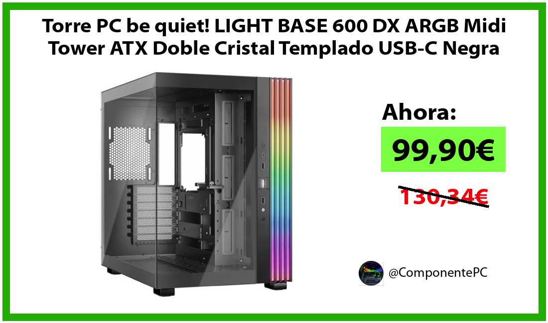 🔹Torre PC be quiet! LIGHT BASE 600 DX ARGB Midi Tower ATX Doble Cristal Templado USB-C Negra solo 99,90€❗️⚡️(PVP: 130,34€)