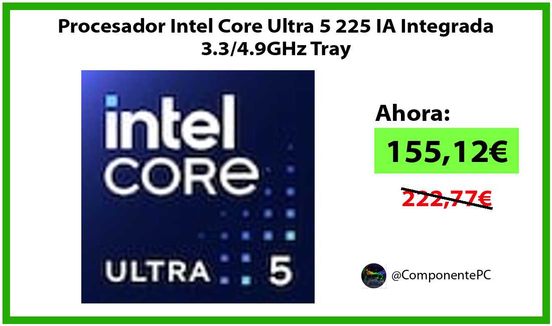 🔹Procesador Intel Core Ultra 5 225 IA Integrada 3.3/4.9GHz Tray solo 155,12€❗️⚡️(PVP: 222,77€)