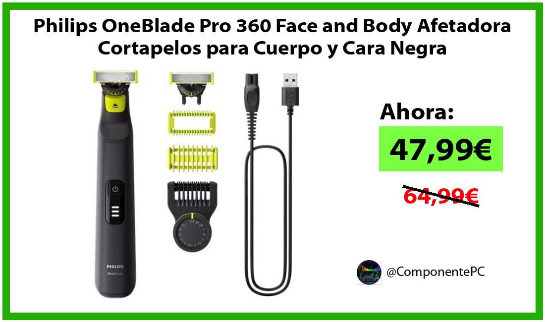 🔹Philips OneBlade Pro 360 Face and Body Afetadora Cortapelos para Cuerpo y Cara Negra solo 47,99€❗️⚡️(PVP: 64,99€)