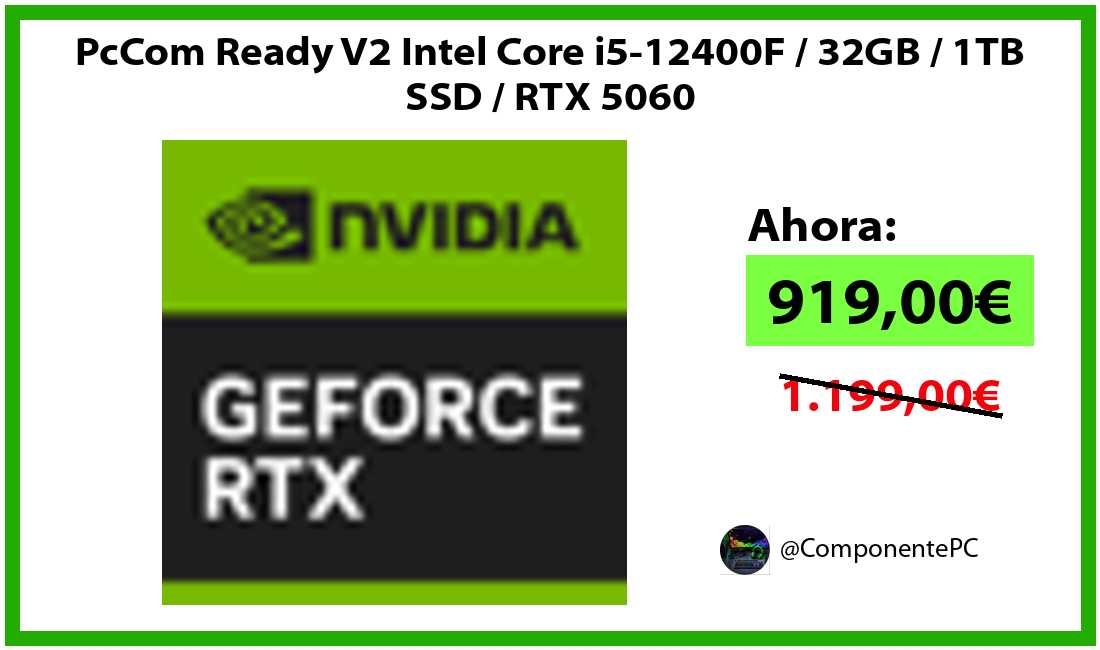 🔹PcCom Ready V2 Intel Core i5-12400F / 32GB / 1TB SSD / RTX 5060 solo 919,00€❗️⚡️(PVP: 1.199,00€)