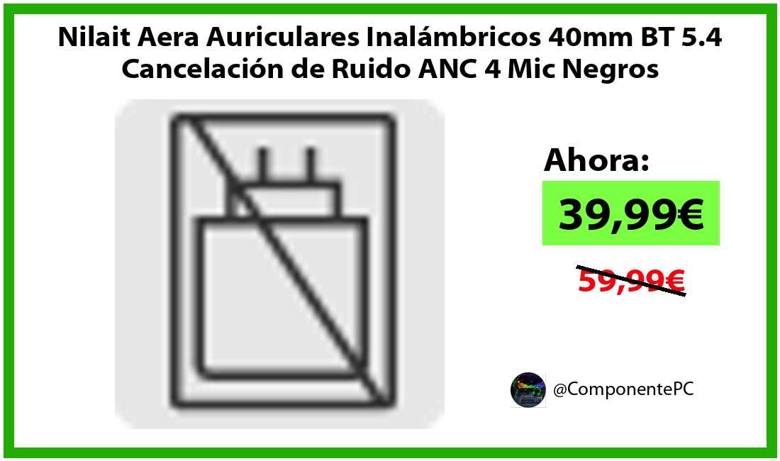 🔹Nilait Aera Auriculares Inalámbricos 40mm BT 5.4 Cancelación de Ruido ANC 4 Mic Negros solo 39,99€❗️⚡️(PVP: 59,99€)