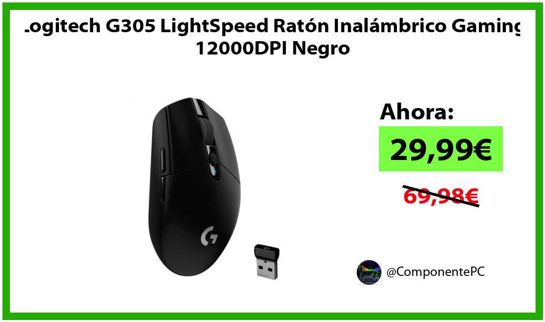 🔹Logitech G305 LightSpeed Ratón Inalámbrico Gaming 12000DPI Negro solo 29,99€❗️⚡️(PVP: 69,98€)
