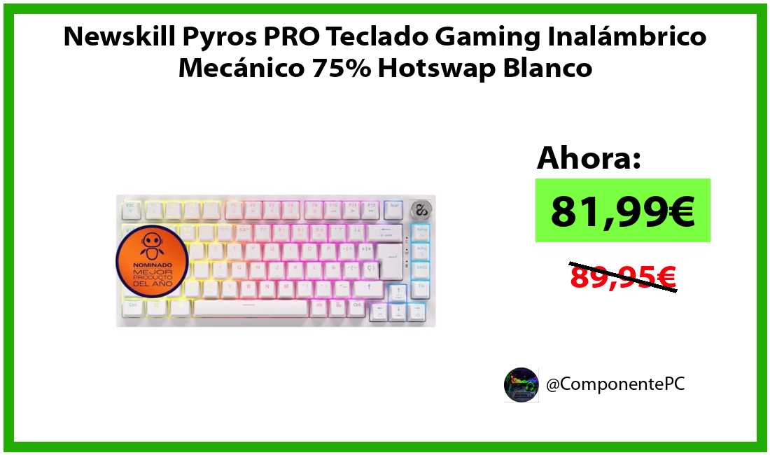 🔹Newskill Pyros PRO Teclado Gaming Inalámbrico Mecánico 75% Hotswap Blanco solo 81,99€❗️⚡️(PVP: 89,95€)