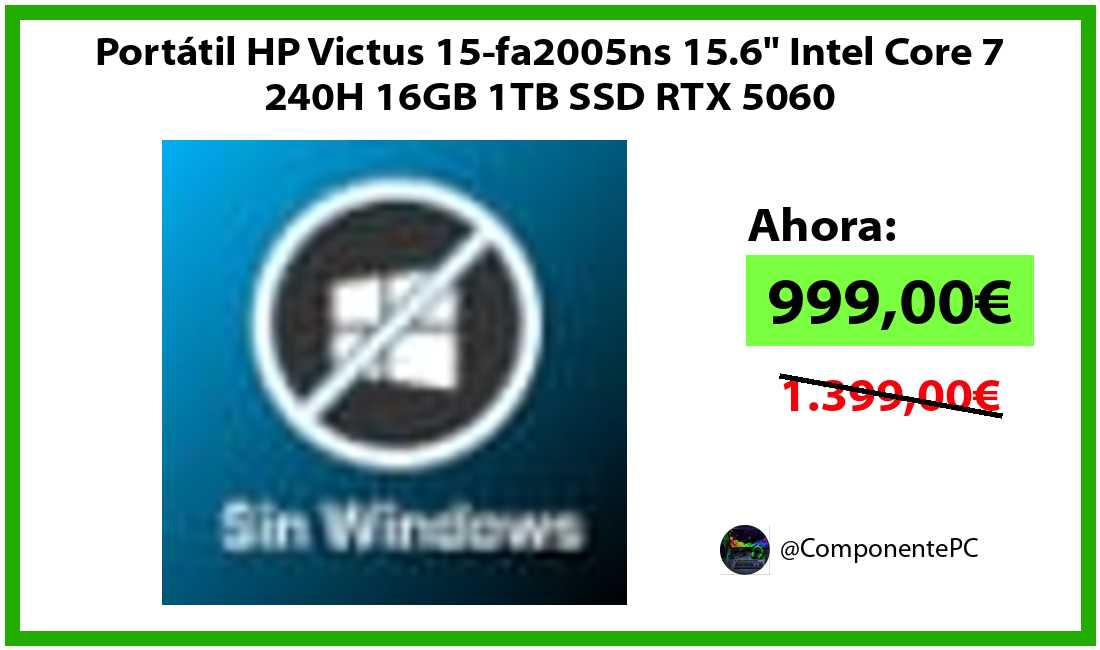 🔹Portátil HP Victus 15-fa2005ns 15.6" Intel Core 7 240H 16GB 1TB SSD RTX 5060 solo 999,00€❗️⚡️
