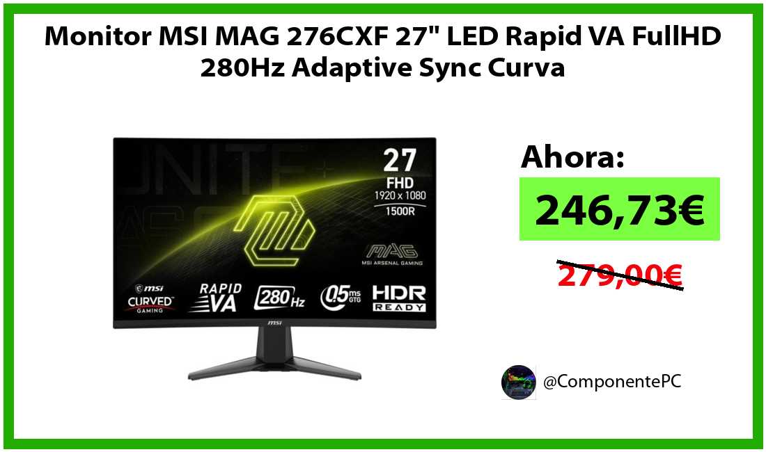 🔹Monitor MSI MAG 276CXF 27" LED Rapid VA FullHD 280Hz Adaptive Sync Curva solo 246,73€❗️⚡️