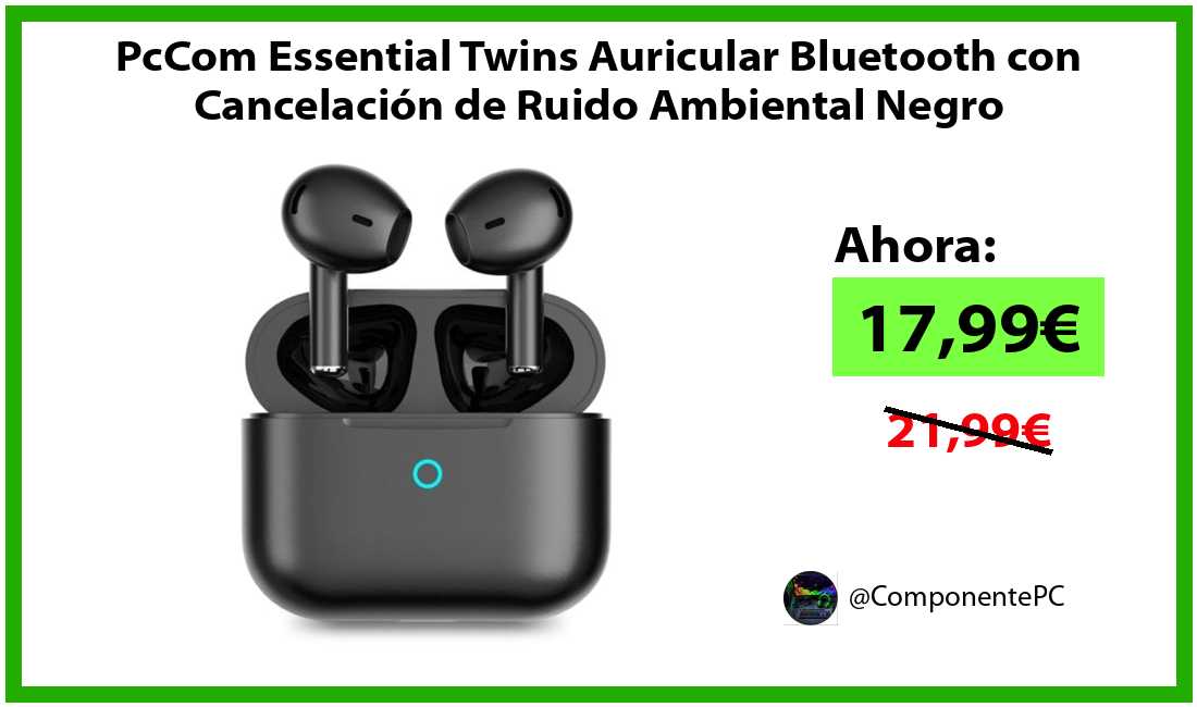 🔹PcCom Essential Twins Auricular Bluetooth con Cancelación de Ruido Ambiental Negro solo 17,99€❗️⚡️
