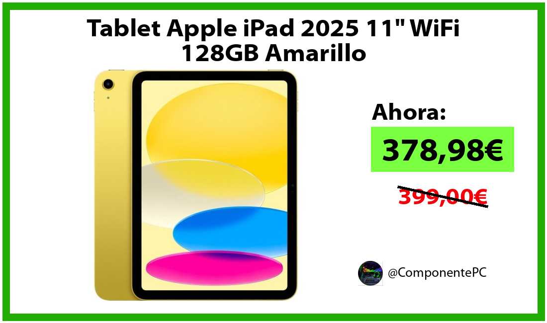 🔹Tablet Apple iPad 2025 11" WiFi 128GB Amarillo solo 378,98€❗️⚡️(PVP: 399,00€)