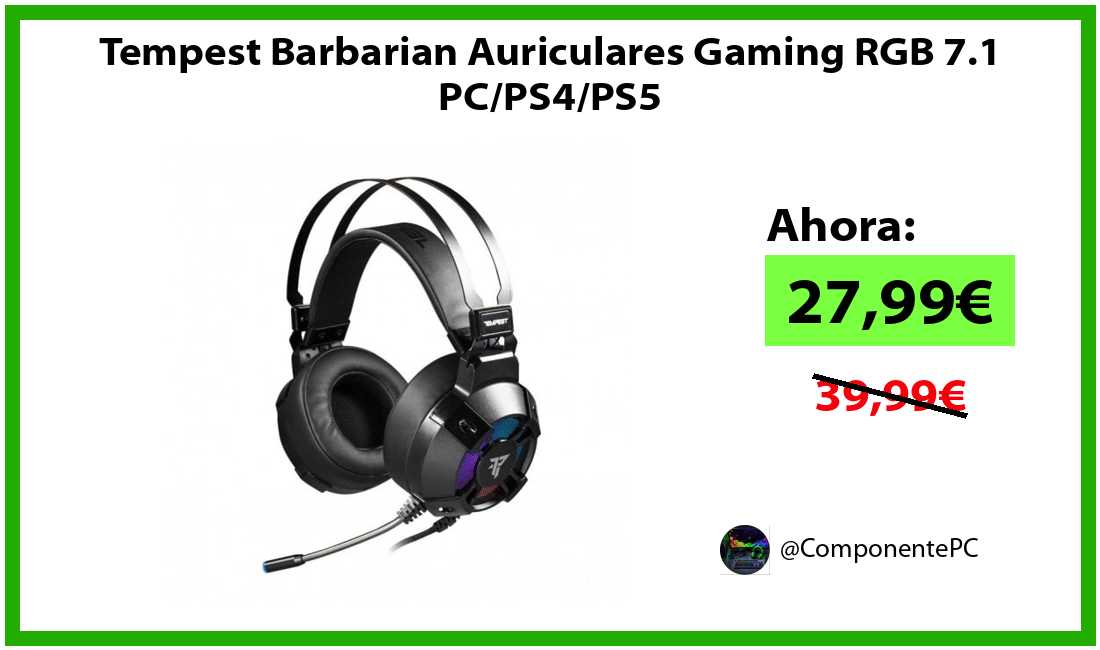 🔹Tempest Barbarian Auriculares Gaming RGB 7.1 PC/PS4/PS5 solo 27,99€❗️⚡️