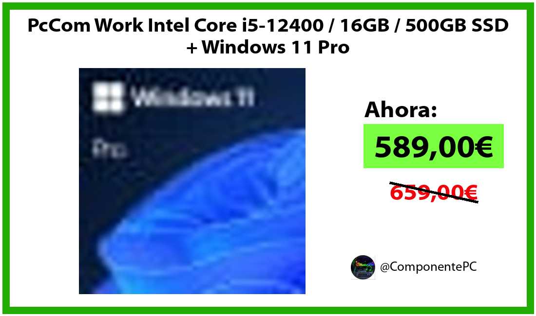 🔹PcCom Work Intel Core i5-12400 / 16GB / 500GB SSD + Windows 11 Pro solo 589,00€❗️⚡️(PVP: 659,00€)