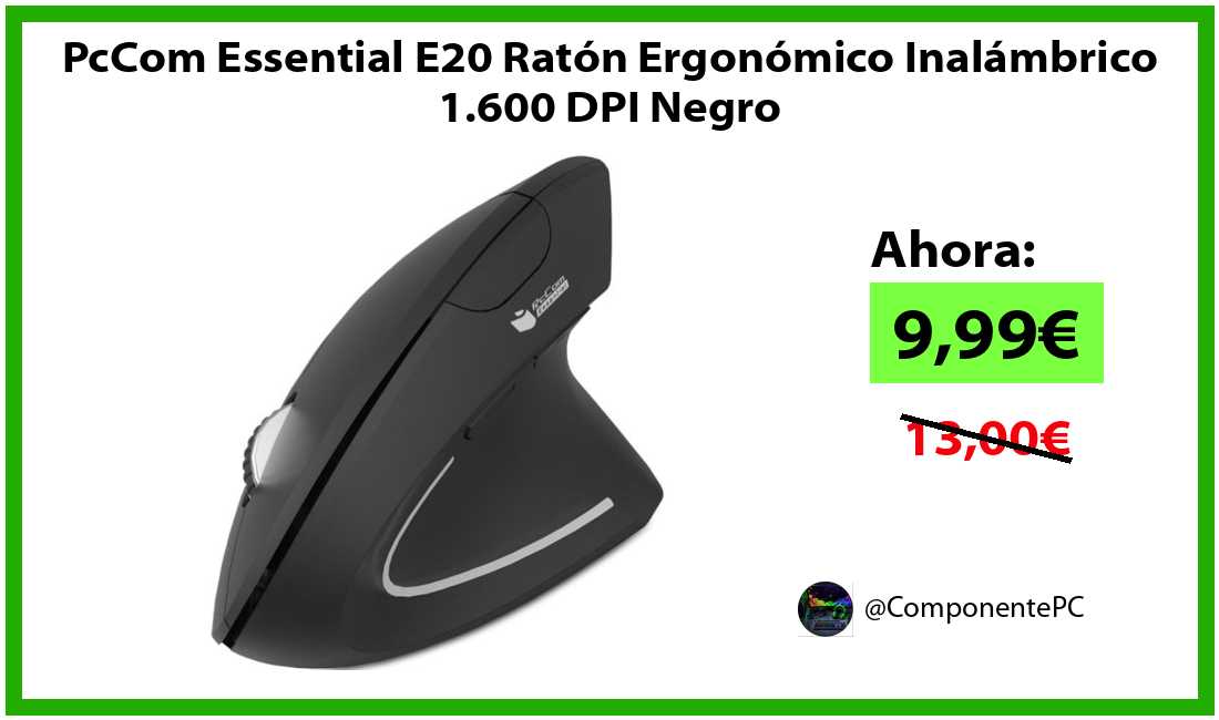 🔹PcCom Essential E20 Ratón Ergonómico Inalámbrico 1.600 DPI Negro solo 9,99€❗️⚡️