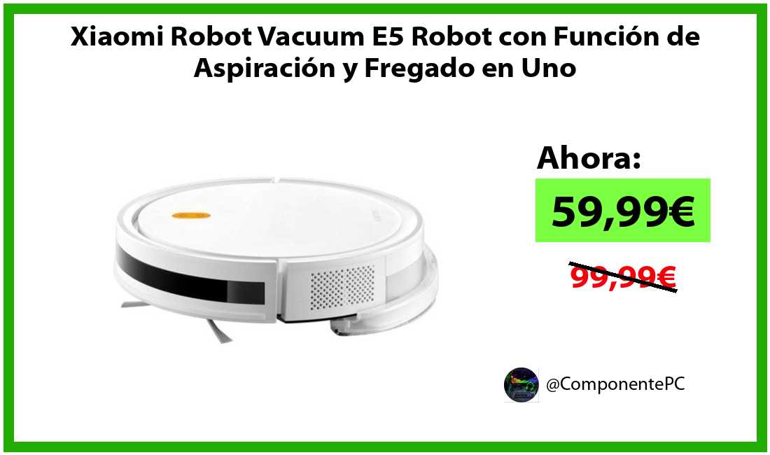 🔹Xiaomi Robot Vacuum E5 Robot con Función de Aspiración y Fregado en Uno solo 59,99€❗️⚡️(PVP: 99,99€)