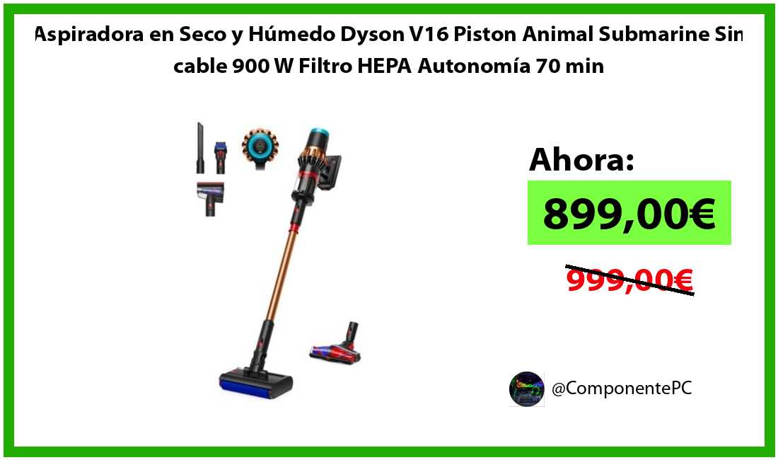 🔹Aspiradora en Seco y Húmedo Dyson V16 Piston Animal Submarine Sin cable 900 W Filtro HEPA Autonomía 70 min solo 899,00€❗️⚡️(PVP: 999,00€)