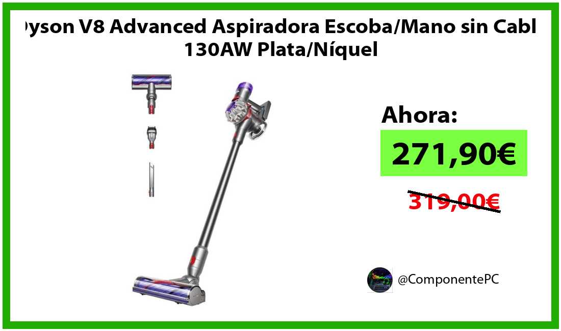 🔹Dyson V8 Advanced Aspiradora Escoba/Mano sin Cable 130AW Plata/Níquel solo 271,90€❗️⚡️