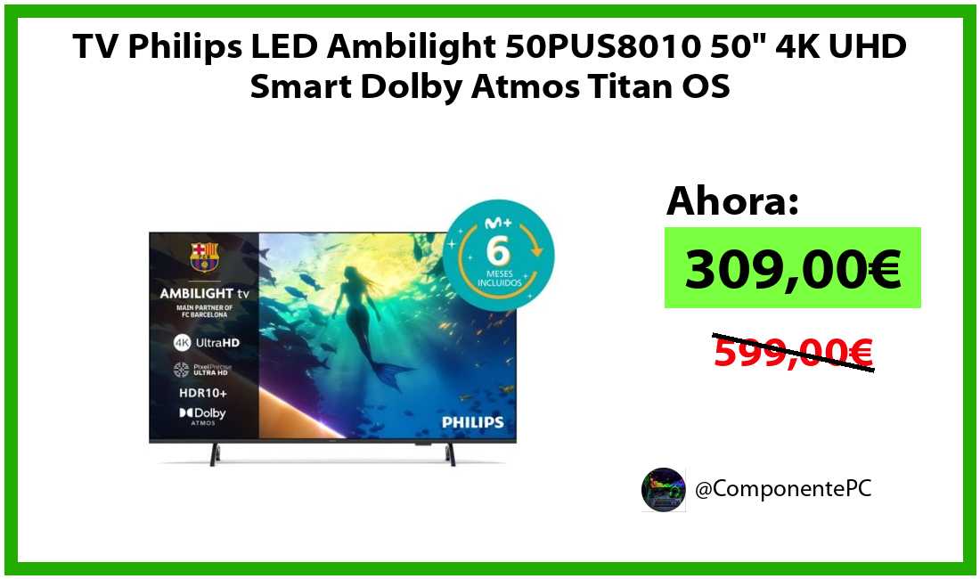 🔹TV Philips LED Ambilight 50PUS8010 50" 4K UHD Smart Dolby Atmos Titan OS solo 309,00€❗️⚡️(PVP: 599,00€)