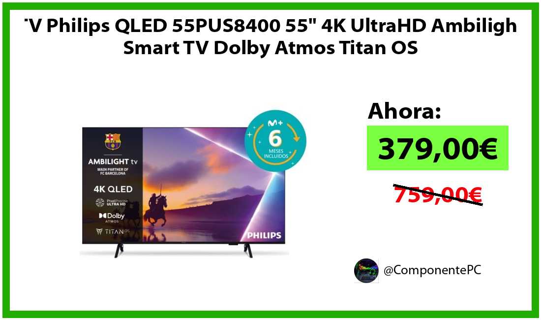 🔹TV Philips QLED 55PUS8400 55" 4K UltraHD Ambilight Smart TV Dolby Atmos Titan OS solo 379,00€❗️⚡️(PVP: 759,00€)