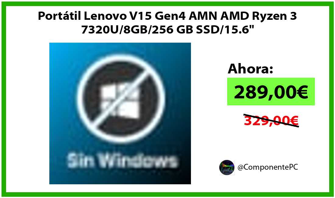 🔹Portátil Lenovo V15 Gen4 AMN AMD Ryzen 3 7320U/8GB/256 GB SSD/15.6" solo 289,00€❗️⚡️(PVP: 329,00€)