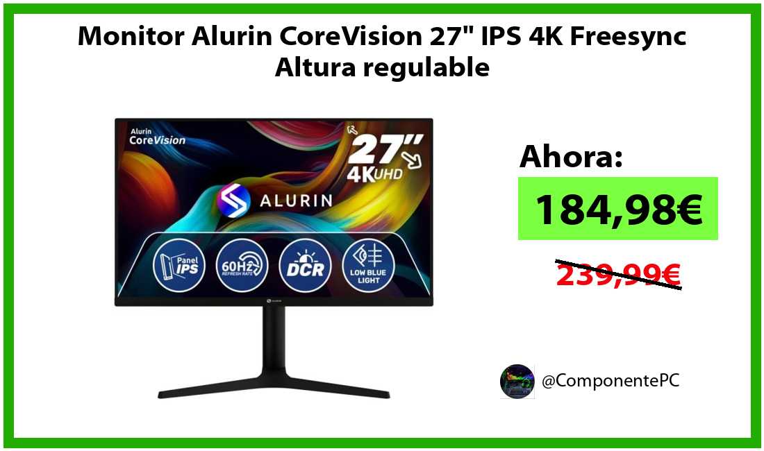 🔹Monitor Alurin CoreVision 27" IPS 4K Freesync Altura regulable solo 184,98€❗️⚡️(PVP: 239,99€)
