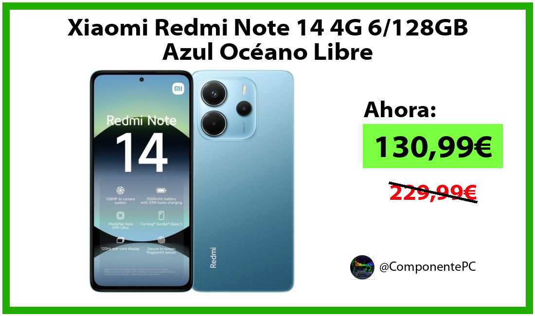 🔹Xiaomi Redmi Note 14 4G 6/128GB Azul Océano Libre solo 130,99€❗️⚡️(PVP: 229,99€)