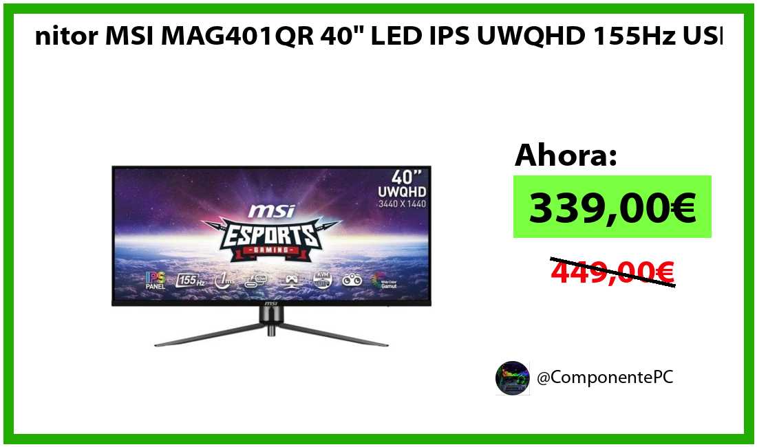 🔹Monitor MSI MAG401QR 40" LED IPS UWQHD 155Hz USB-C solo 339,00€❗️⚡️(PVP: 449,00€)