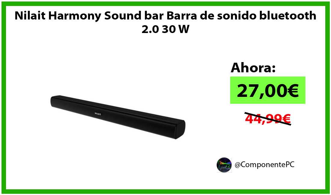 🔹Nilait Harmony Sound bar Barra de sonido bluetooth 2.0 30 W solo 27,00€❗️⚡️(PVP: 44,99€)