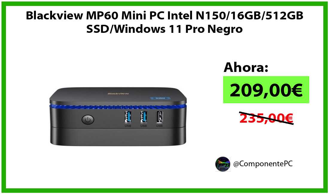🔹Blackview MP60 Mini PC Intel N150/16GB/512GB SSD/Windows 11 Pro Negro solo 209,00€❗️⚡️(PVP: 235,00€)
