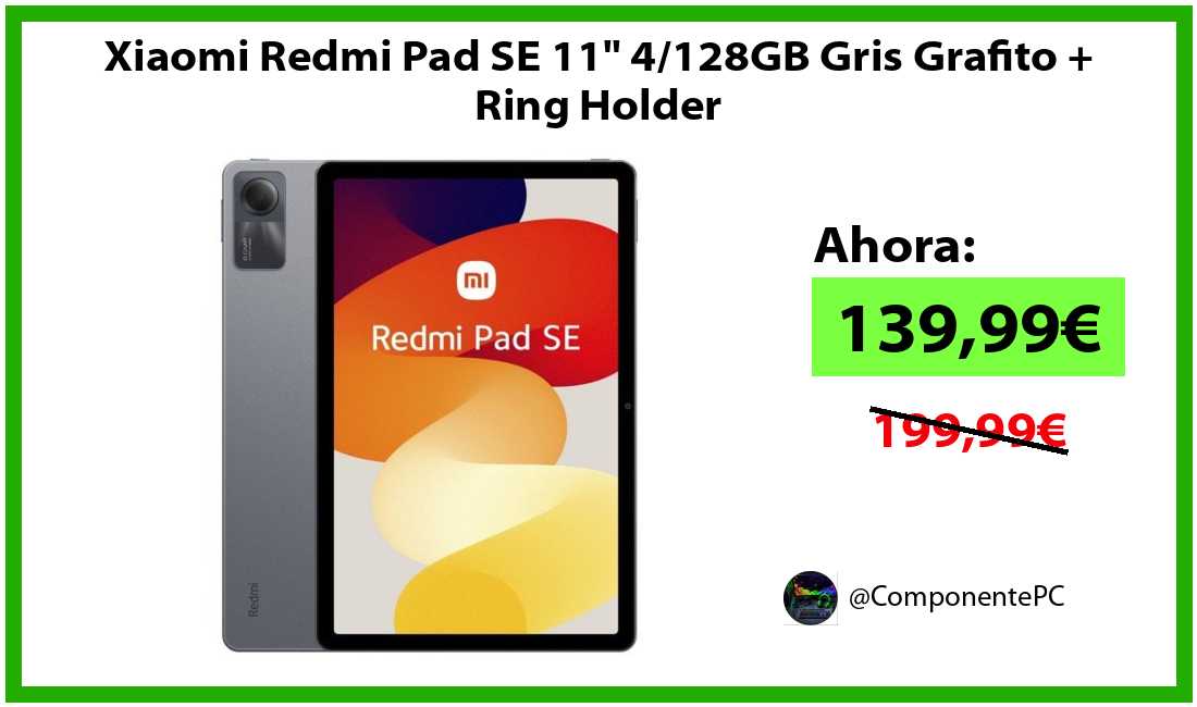 πΉXiaomi Redmi Pad SE 11" 4/128GB Gris Grafito + Ring Holder solo 139,99β¬βοΈβ‘οΈ(PVP: 199,99β¬)
