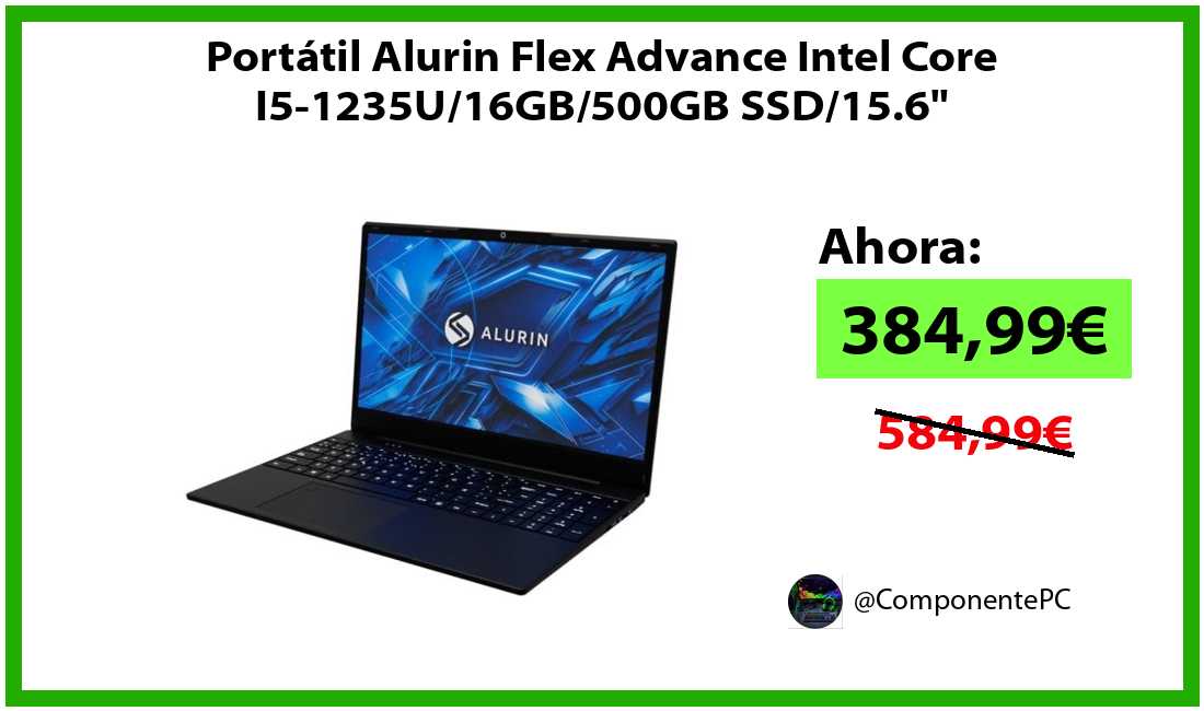 πΉPortΓ‘til Alurin Flex Advance Intel Core I5-1235U/16GB/500GB SSD/15.6" solo 384,99β¬βοΈβ‘οΈ(PVP: 584,99β¬)