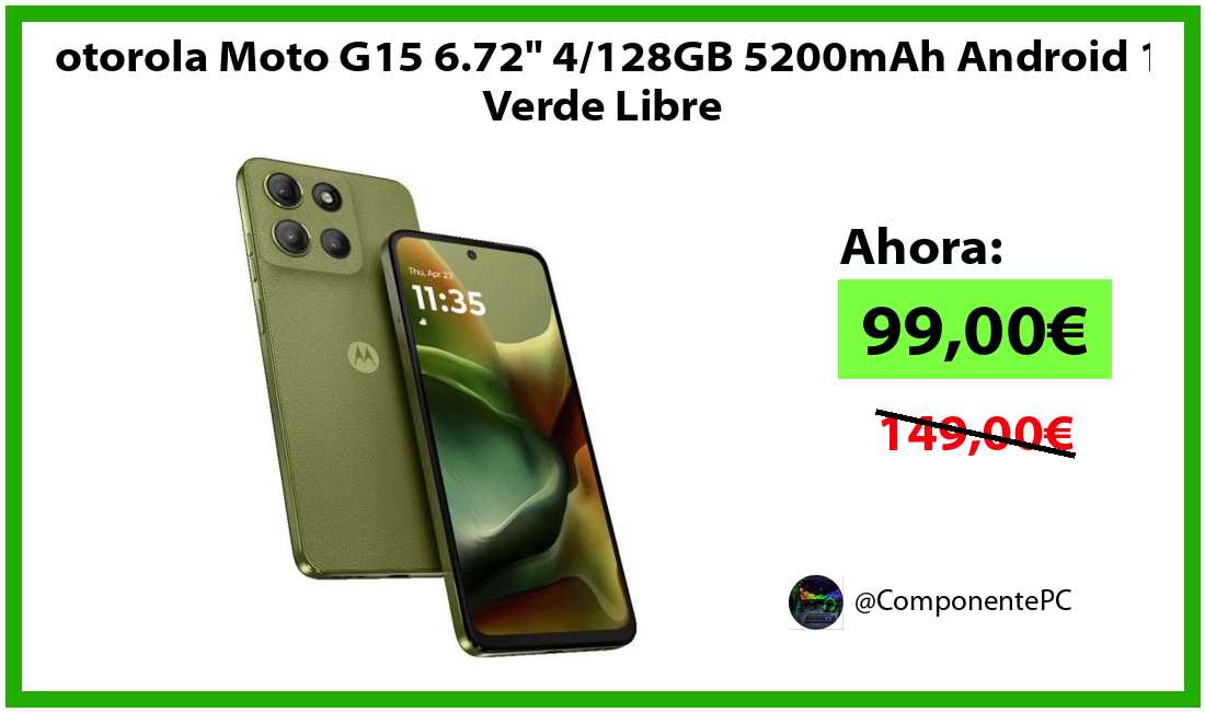 πΉMotorola Moto G15 6.72" 4/128GB 5200mAh Android 15 Verde Libre solo 99,00β¬βοΈβ‘οΈ(PVP: 149,00β¬)