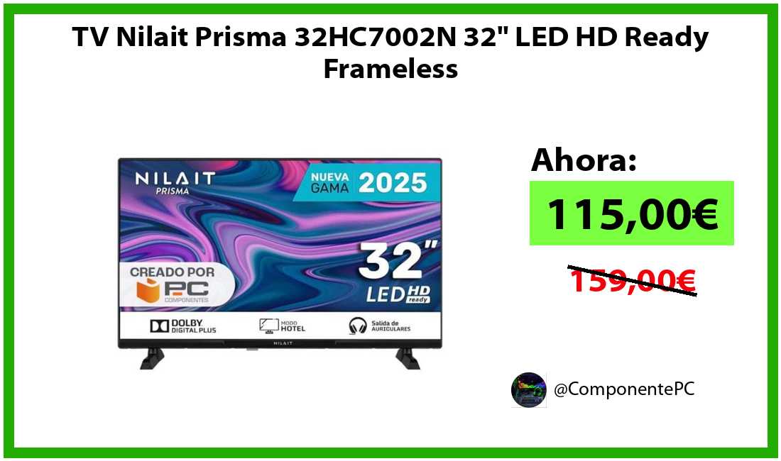 πΉTV Nilait Prisma 32HC7002N 32" LED HD Ready Frameless solo 115,00β¬βοΈβ‘οΈ(PVP: 159,00β¬)