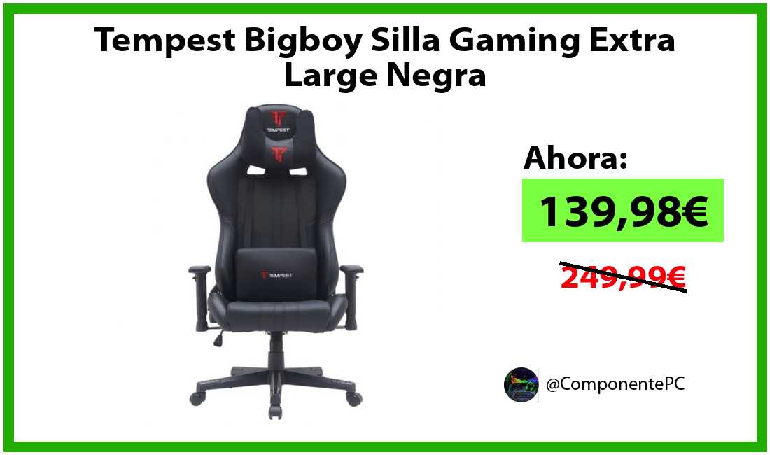 πΉTempest Bigboy Silla Gaming Extra Large Negra solo 139,98β¬βοΈβ‘οΈ