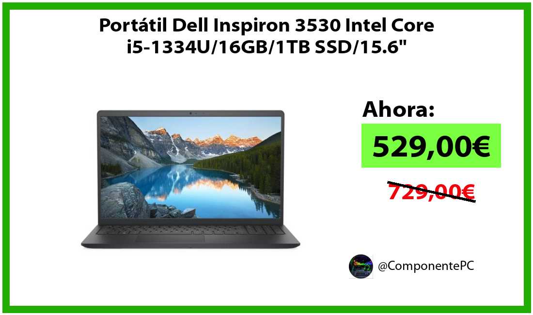 🔹Portátil Dell Inspiron 3530 Intel Core i5-1334U/16GB/1TB SSD/15.6" solo 529,00€❗️⚡️(PVP: 729,00€)