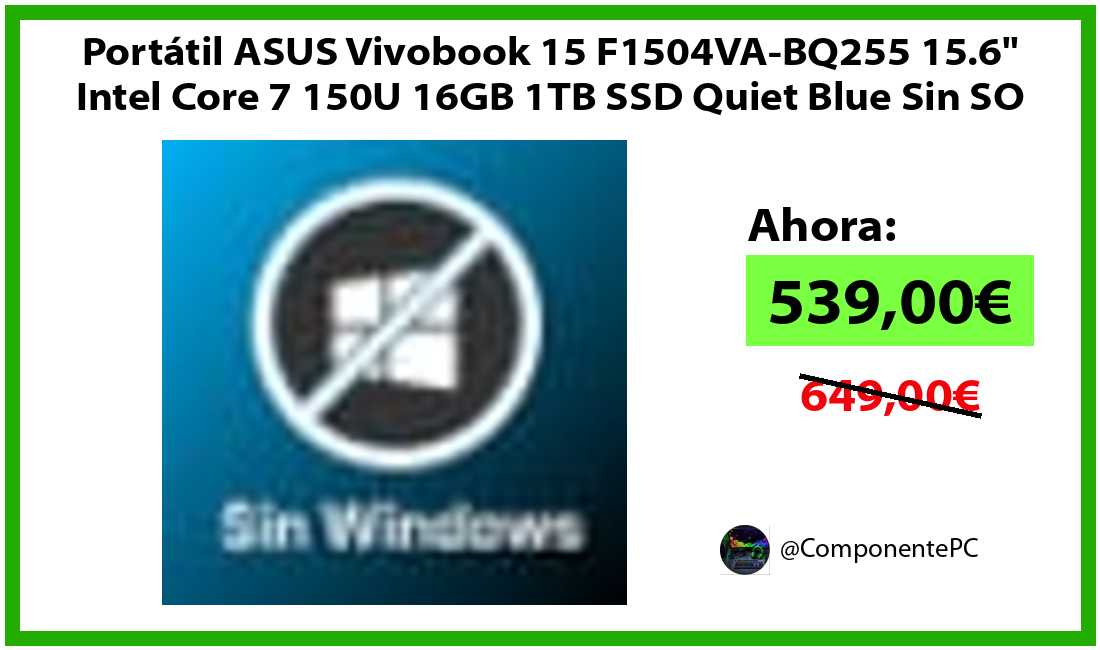 🔹Portátil ASUS Vivobook 15 F1504VA-BQ255 15.6" Intel Core 7 150U 16GB 1TB SSD Quiet Blue Sin SO solo 539,00€❗️⚡️(PVP: 649,00€)