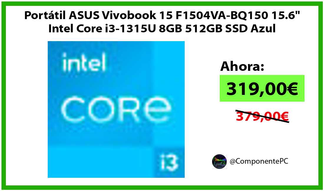 🔹Portátil ASUS Vivobook 15 F1504VA-BQ150 15.6" Intel Core i3-1315U 8GB 512GB SSD Azul solo 319,00€❗️⚡️