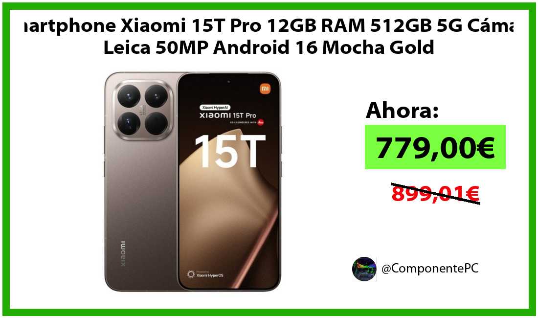 🔹Smartphone Xiaomi 15T Pro 12GB RAM 512GB 5G Cámara Leica 50MP Android 16 Mocha Gold solo 779,00€❗️⚡️(PVP: 899,01€)